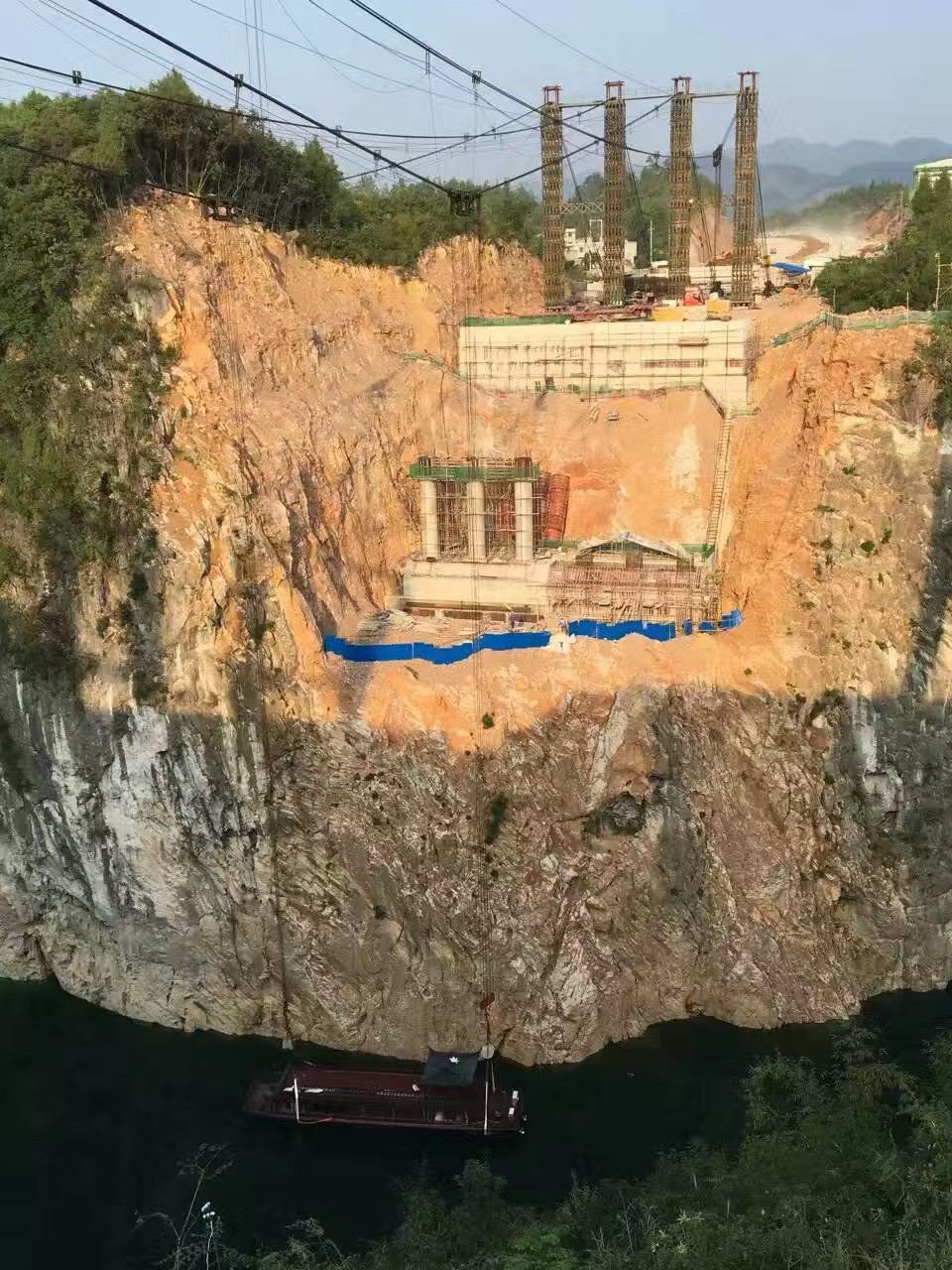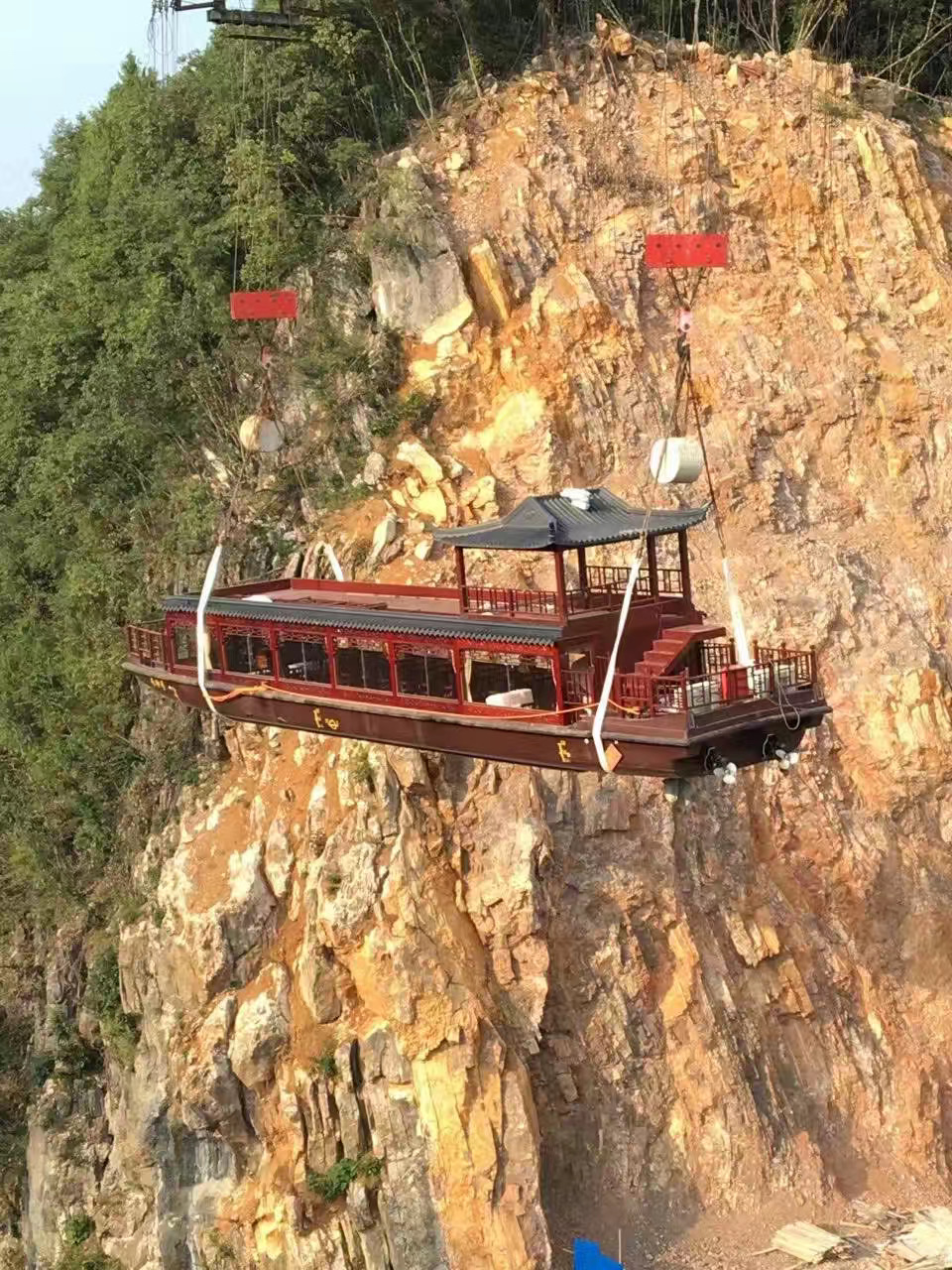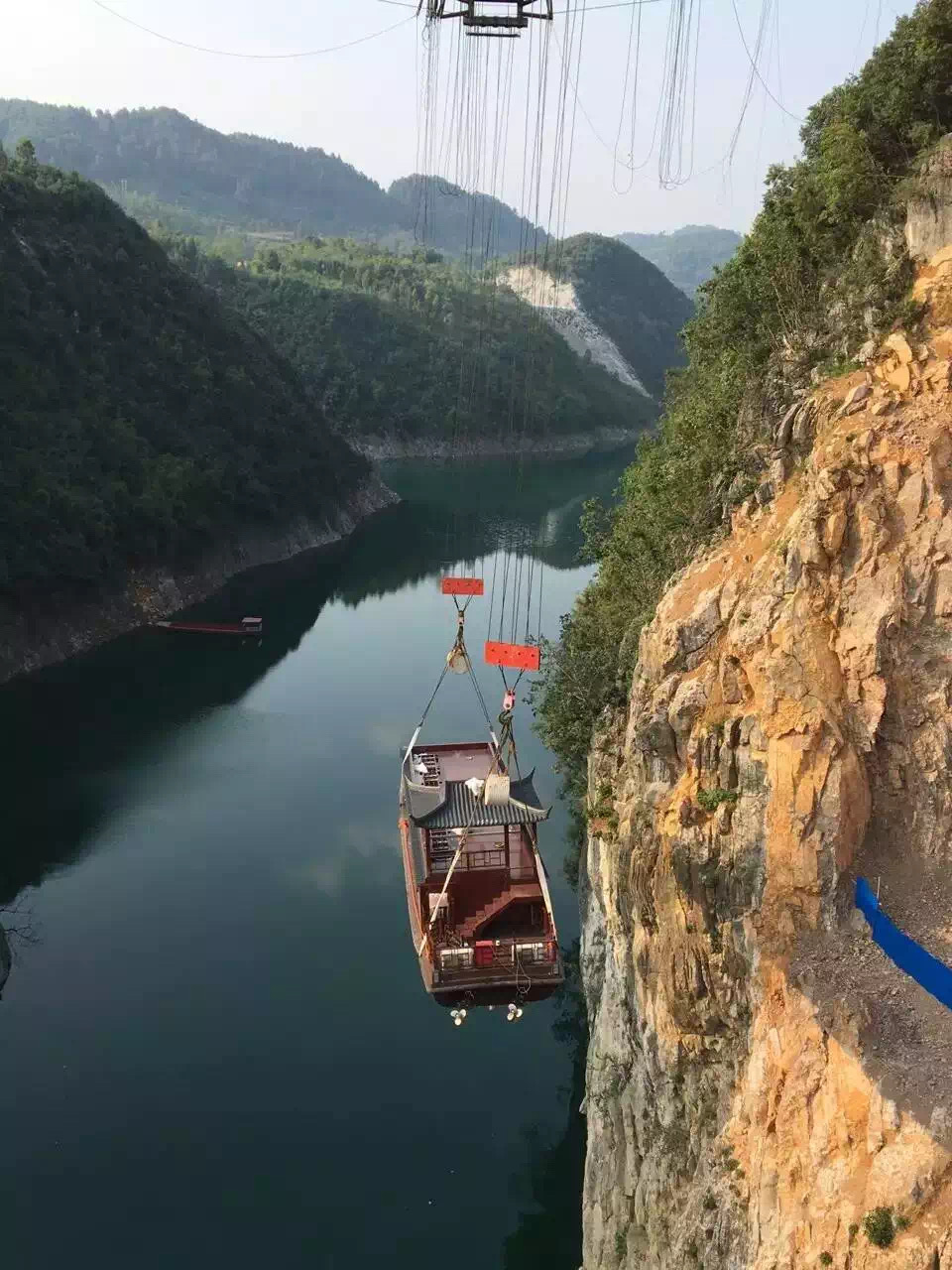 滑车助力玻璃索桥建设