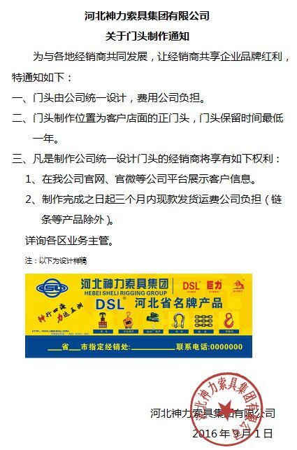 河北神力集团为了与广大客户更好的稳定发展。为提升品牌竞争力,为此关于制作门头通知。