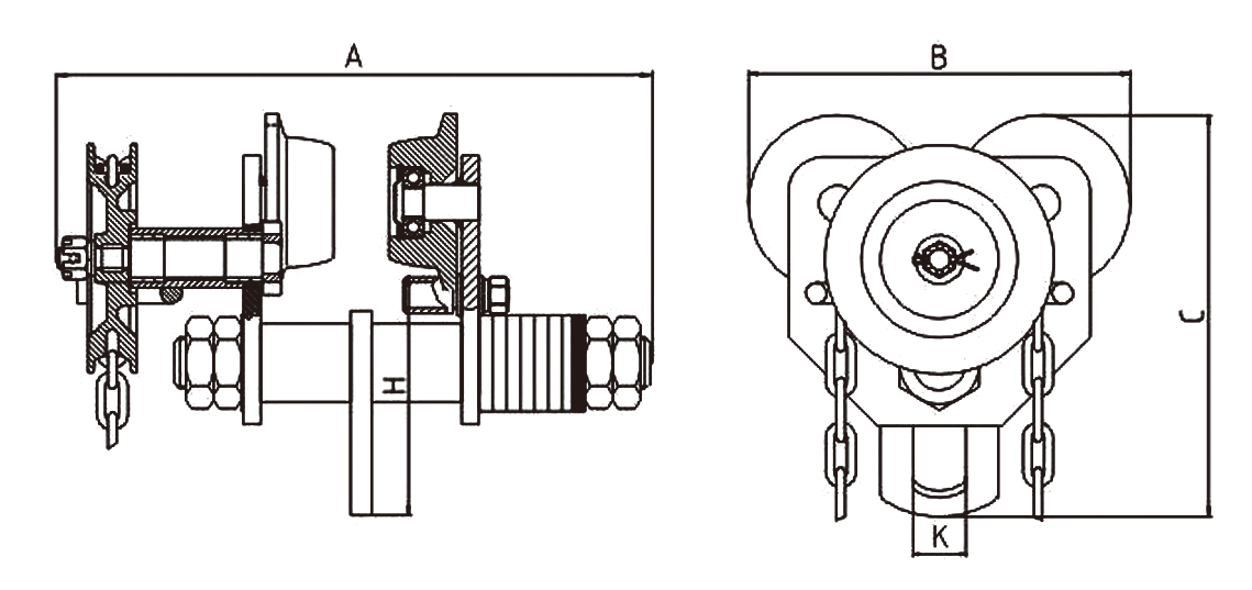 GCL系列手拉单轨行车特点: 1、锻造的经过热处理的跑车轮,牢固耐用,运行平稳,可选配铸造跑车轮。 2、跑车轮有封闭式的轴承,运行更省力。 3、起重量1/2Ton-10Ton。 4、过弯能力良好